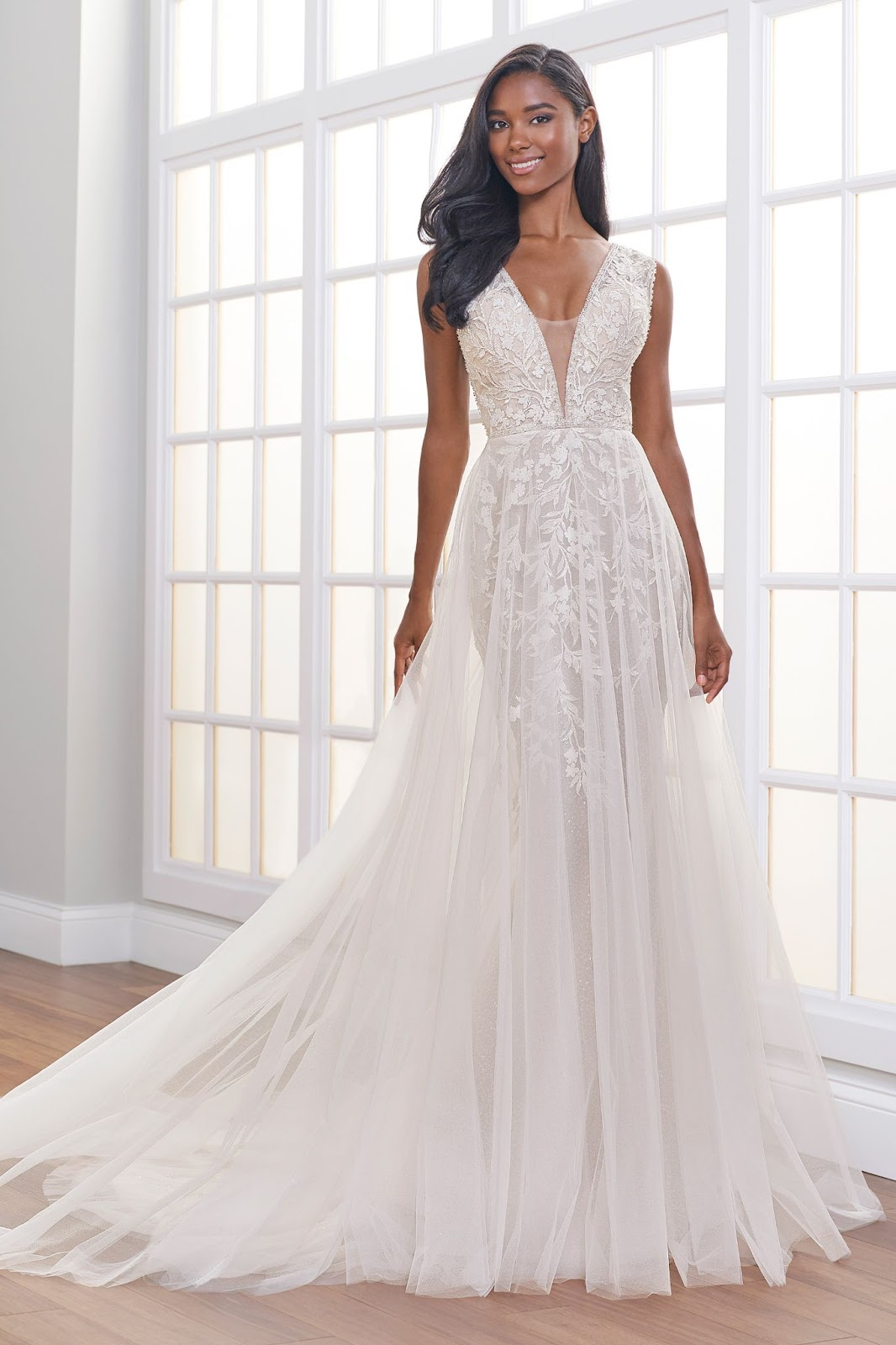 Your wedding dress overskirt might just be the perfect addition to your one-of-a-kind bridal vision, whether it's in a traditional church, an intimate garden or an extravagant ballroom. With a one-dress-two-looks mentality, you can have the perfect ceremony dress and a versatile reception look.