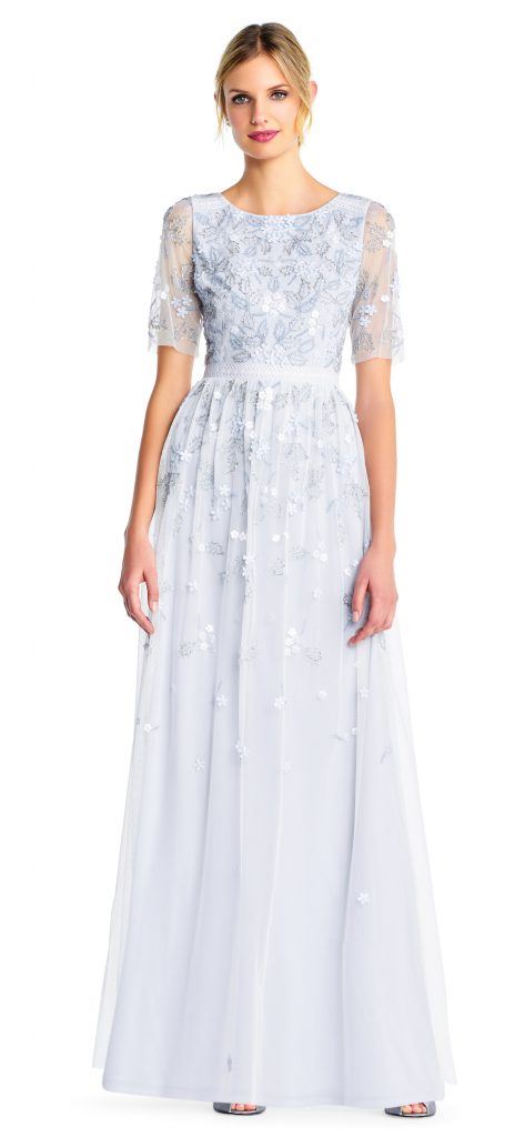 One of the questions most frequently asked of our team is “will these gowns look good together?” So we’ve compiled an EASY way to ensure every mismatched bridal party looks it’s very best using our favorite color trend– Serenity blue.